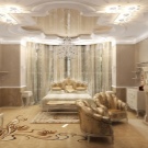 Стъклено покритие на повърхността на тавана може да се счита за чудесна идея. Ако сте избрали просто бяло покритие, красив полилей може да го украси. Това е много характерно за модерен интериор..