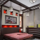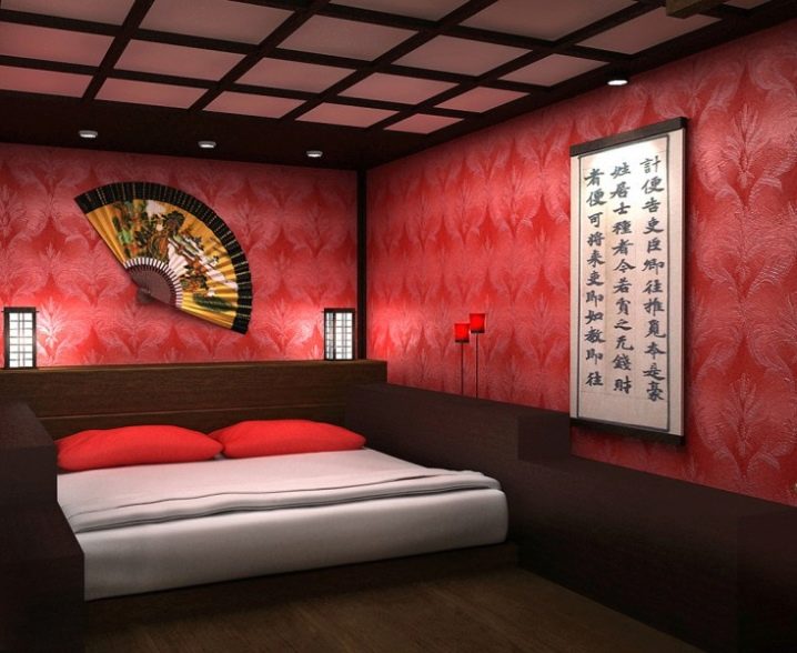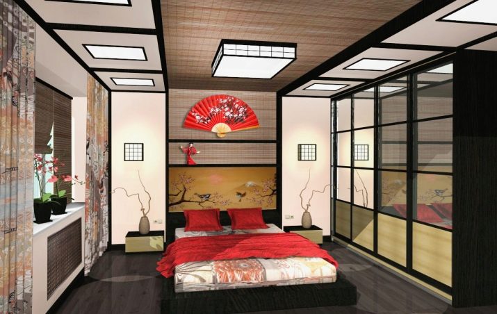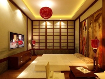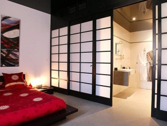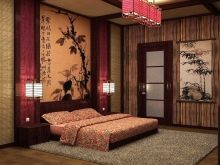 Японският стил е малко по -различен от китайския. Минимализъм, строги линии и сдържани цветове са присъщи на него. Цветовата гама обикновено е ограничена до кремаво и шоколадово или други подобни нюанси. Наличието на червен акцент е задължително.