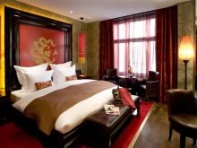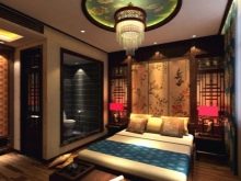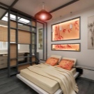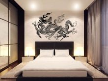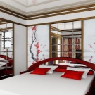 Спалнята в китайски стил е направена в сдържана цветова схема. Характерните черти са ниско, просторно легло и гардероб с прегради. Акцентът е върху изображението на дракон на стената в типична китайска техника на рисуване.