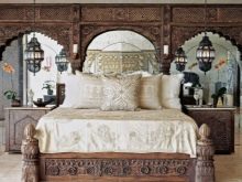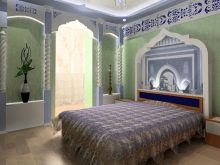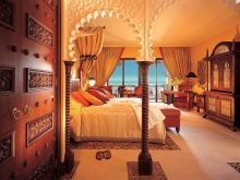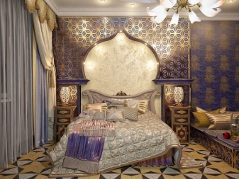 Спалня в арабски стил е в състояние да пренесе всеки в ориенталската приказка “Хиляда и една нощ”. Само смел и оригинален човек ще се осмели да украси спалнята си, имитирайки удавени в лукс марокански дворци.