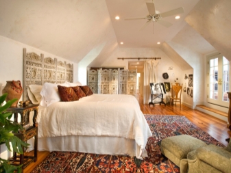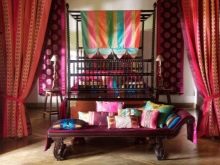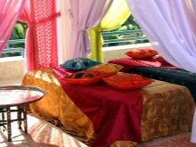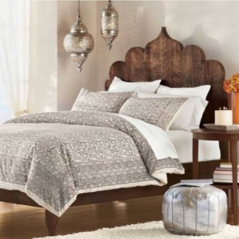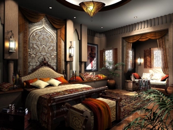 В стаята трябва да има много възглавници с различни форми и размери., които могат да присъстват не само на леглото, но и да играят ролята на сядане на пода. Покривала и възглавници винаги са украсени с сложна бродерия, скъпоценни камъни (в съвременната версия, разбира се, те са заменени от кристали) и пискюли.