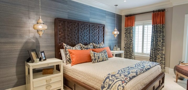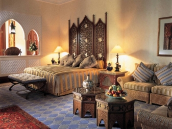 Нощните шкафчета могат да бъдат заменени с характерните полигонални инкрустирани арабски маси или сандъци, които ще добавят още повече оригиналност към интериора. Те са снабдени с лампи, които отговарят на стила. Допустимо е над тях да се закачат марокански лампи от ковано желязо, които са колкото функционални, толкова и красиви..