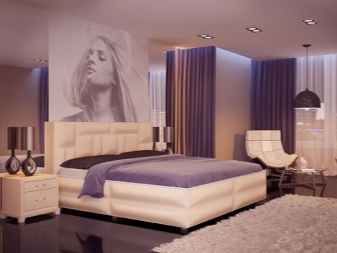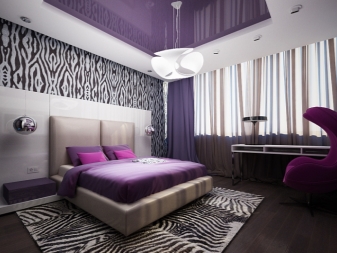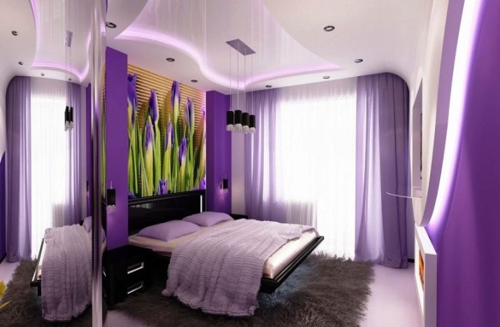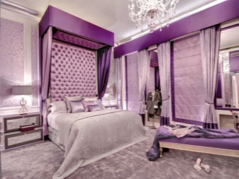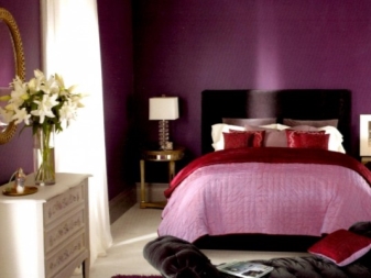 Ярко лилавото се счита за депресивно, така че не се препоръчва да се използва в големи количества. За дизайна на спални е предпочитан лавандулов или деликатен люляков нюанс. Те създават атмосфера на сигурност, лукс и спокойствие..