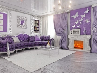 Всеки нюанс има различна степен на насищане. Светлите лилави тонове, които включват люляк и люляк, имат успокояващ ефект върху човека, изпълват стаята с романтика и позитивност, а тоновете с по -голяма наситеност, напротив, събуждат емоциите, създават атмосфера на мистика и мистерия.