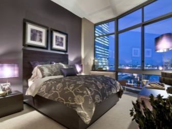 В спалнята за младоженци можете да използвате сиво за спокоен фон и да го комбинирате с изразително-чувствения цвят на аметиста..