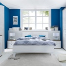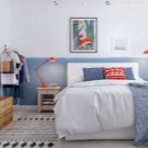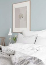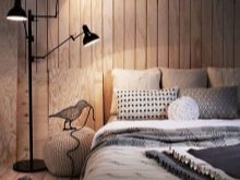 Широко легло с високо табла е идеално за скандинавска спалня. Той ще се впише добре в декора, ако го поставите до стена. Това не е единственият възможен вариант: скандинавският стил предполага органично използване на пространството. В малките стаи леглото може да се изнесе от центъра на композицията. Не използвайте прекалено много лампи. Въпреки че скандинавската спалня трябва да бъде възможно най-светла, 1-2 полилея с ярки флуоресцентни лампи ще бъдат достатъчни, за да я осветят. Лампите трябва да дават най -естествената и естествена светлина, останалото ще бъде направено от белите повърхности на стените, тавана и различни предмети..