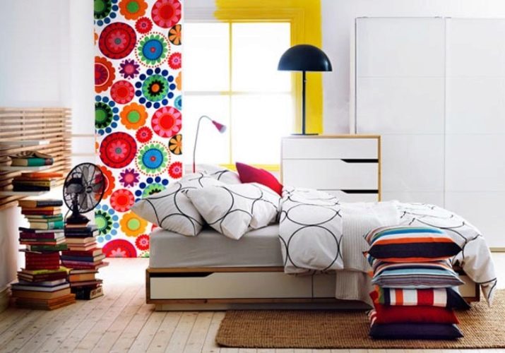 Топлите цветове играят важна роля в спалнята. Бежови и медени нюанси, праскова и бледо розово ще придадат на стаята усещане за уют и топлина. Студените нюанси трябва да се избягват. В комбинация с основния бял цвят, те ще направят стаята неудобна.Друг начин да играете на контраста е да добавите ярки текстилни изделия в стаята. Възглавница или одеяло с необичаен модел ще бъде перфектният завършек на вашата стая..