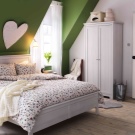 За да се позволи на слънчевата светлина да влиза свободно в спалнята, завесите за прозорци се използват рядко. Ако искате да разнообразите интериора на стаята със завеси, тогава имайте предвид, че те трябва да са леки (ако е възможно, леки). Като алтернатива можете да използвате щори. Големите огледала могат да се считат за друга характерна черта на този стил. В комбинация с дървени рамки, сребърната повърхност на огледалата ще създаде привлекателен контраст.Най-добре е да потърсите необходимите ви мебели в IKEA. Той предлага много широка гама от подобни продукти. Тази марка има северни корени, както и скандинавския стил в интериора..
