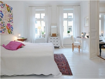 Въпреки това, когато декорирате спалня, не забравяйте за основното: голям брой предмети унищожават минимализма. В опит да разнообразите декора на стаята е важно да не се увличате. Изобилието от декоративни елементи може да зареди стая и да й придаде претрупан вид. Функционалността на мебелите в скандинавска спалня е съчетана с комфорт и това е най -важният принцип на този стил. Светлите цветове, простотата на дизайна и отхвърлянето на ненужни елементи на декора ви позволяват ефективно да използвате цялото свободно пространство на стаята и визуално да увеличите стаята, което е особено важно за малките спални. Използването на естествени елементи в дизайна на спалнята ще направи стаята уютна, а простотата на мебелите (без дърворезба и други шарки) ще запази самия минимализъм, характерен за скандинавския стил..