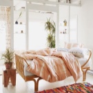 Този стил се характеризира с изобилие от елегантен текстил. Тъканите трябва да са естествени – лен или памук. Кожените и кожени изделия ще се впишат добре в стаята.Позволено е в стаи, декорирани в този стил, една от стените или част от нея да са облицовани с тухли. Тухлената стена оживява обстановката, като в същото време изглежда минималистично в правилната степен. Металът и пластмасата са приемливи при проектирането на спални. Те ще изглеждат много добре в лампи, рамки за снимки или малки фигурки. Металните детайли в комбинация с естествени елементи (дърво и камък) отново ще създадат контраста, необходим за този стил. Не се увличайте обаче, за да не нарушите единството на стила..
