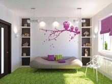 Ако не искате да декорирате цялата стая в един цвят, тогава можете да опитате да комбинирате няколко нейни нюанса или да залепите една от стените с шарени тапети.