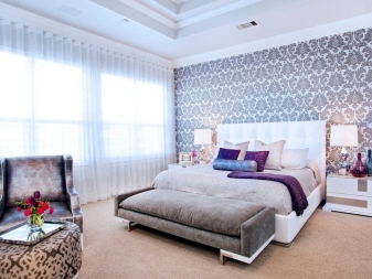Текстурираният тапет е интересен и стилен вариант, който е чудесен за декориране на малки спални. Дизайнерите препоръчват да се обърне внимание на финия модел на матиране. От една страна, тапетът изглежда почти монохромен, но в същото време върху него има определен модел. Спадът в сенките и обемите ви позволява да създадете интересен ефект.
