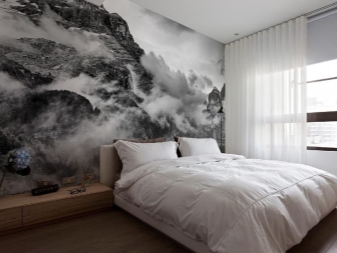 За спалнята не се препоръчва да избирате дизайн с динамика. По -добре е да преместите оживен град, пътища, небостъргачи в хола, а в спалнята да се концентрирате върху нещо по -гладко, което ще създаде мир и спокойствие.