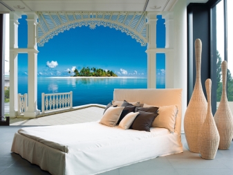 Тапетите в морски стил също често се използват. Пясъчните плажове, корабите и различните съоръжения могат да бъдат подходящи както за детска стая, така и за стая за възрастни пътници, така че морето винаги ще бъде близо и ще създаде успокояваща атмосфера.