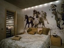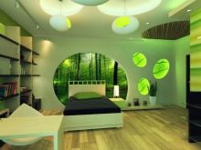 В модерен стил можете да украсите спалня за тийнейджър. Имитация на тухлена зидария, репродукции на произведения на Анди Уорхол, различни абстрактни изображения – всичко това ще се впише в интериора на тийнейджърска спалня, а тъй като най -често е и работно място, фототапетът ще помогне да се раздели стаята на зони.