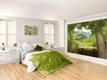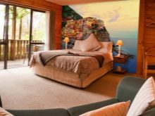 Образът на гората е благоприятен за спалнята. Такива тапети обикновено са доста изразителни, но винаги спокойни, дишат с постоянство, усещане за стабилност.