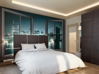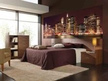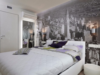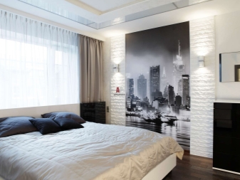 Удобната и уютна атмосфера, така необходима в спалнята, също може да създаде образ на градския пейзаж.