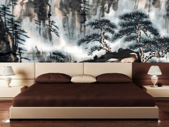 Ако желаете, можете да създадете фототапет на базата на фън шуй. В този случай трябва да дадете предпочитание на романтични и спокойни истории. Панелите, изобразяващи влюбени двойки, птици, животни и пейзажи, ще бъдат подходящи..