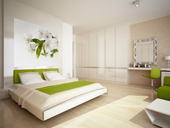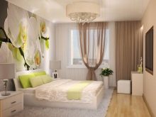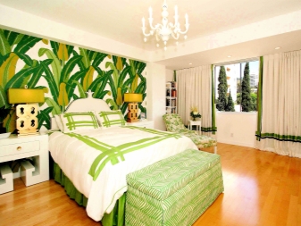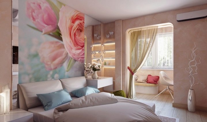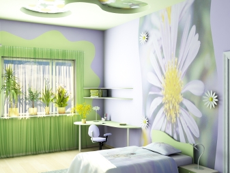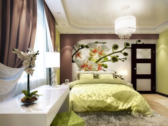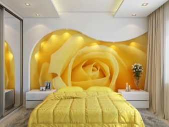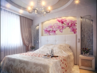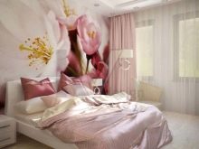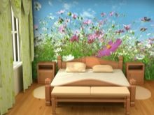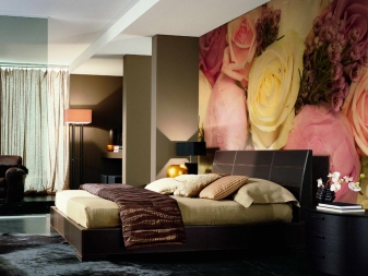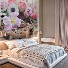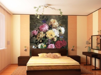 Флоралните мотиви са един от любимите варианти за изображение на потребителите. Най -романтичният и деликатен интериор е придружен от образа на цветя. Що се отнася до стиловата посока на спалнята, изображението на цветя може да бъде избрано за почти всяко интериорно решение, било то класически интериор или минимализъм, детска стая или спалня на младо момиче. В големи стаи стенописите с изображения на цветя, заснети с помощта на макро фотография, изглеждат страхотно. Има особен чар в разглеждането на капчици роса на венчелистчета или вени по листата, създавайки много специална атмосфера в спалнята..