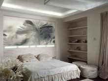 За спалня в светли цветове фототапетът може да действа като ярки акценти. Така например можете да изберете фототапет, създаден по принципа на колаж от няколко елемента, и да ги поставите срещу леглото в спалнята, те ще се превърнат в добър акцент и ще разнообразят интериора, ще внесат нотка на новост.