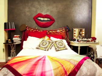 Стилът на поп арт, който набира популярност в интериорния дизайн, ще позволи използването на нестандартни решения. Например, в допълнение към репродукции на известни произведения на поп арт, можете да използвате красиви изображения на хора, стилизирани като интериор. Устните изглеждат доста интересни и необичайни в интериора. Образът на женските устни с правилна форма с червено червило и снежнобяли зъби днес е доста търсено, така че можете да го наречете тенденция. Но лебедите, които бяха толкова популярни през 90 -те, напускат и разчистват ниша за други интересни опции..
