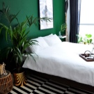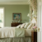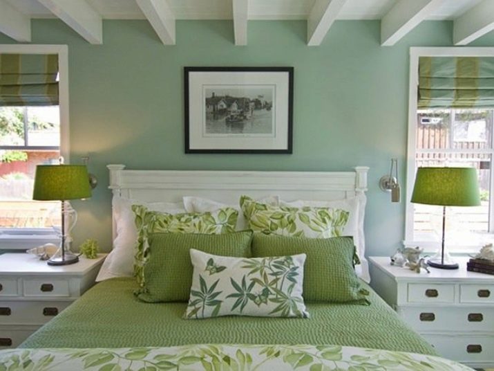 Много психолози са уверени, че този цвят има благоприятен ефект върху морала на човека, позволявайки му да се чувства много по -добре, да се отърве от проблемите и да се отпусне след тежък работен ден. Ето защо зеленото е идеално за спалнята, защото сънят тук ще бъде здрав и спокоен..