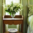 Ако спалнята е декорирана в стил Прованс, тогава старите снежнобели мебели, които ще изглеждат привлекателни и стилни, ще бъдат отличен вариант. Тандемът от зелени и бели цветове изглежда доста красив, със сигурност ще зарадва собствениците на помещенията. Много дизайнери съветват да купуват мебели от бреза или бор за такива помещения. Бамбуковите продукти също изглеждат страхотно в зелената стая..
