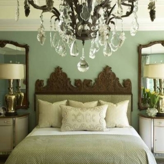 - Ярки нюанси, които допринасят за усещане за спокойствие и спокойствие. Светлозеленият цвят ще бъде идеален за декориране на стаята на младоженците..