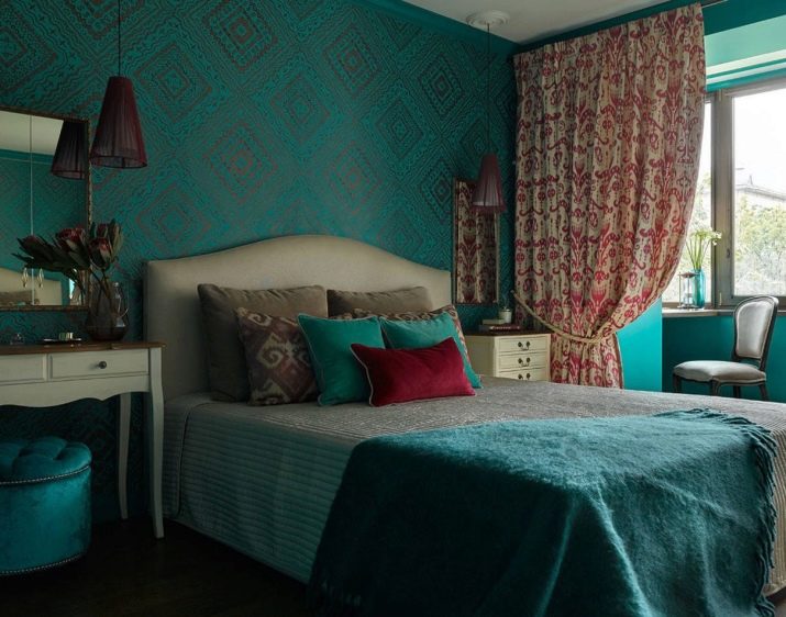- Зелено -сините тонове изглеждат най -добре в тандем със синьо-син оттенък.