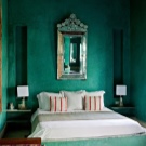 Когато декорирате спалня, е необходимо правилно да използвате различни декоративни дреболии, които могат да трансформират една стая, да подчертаят нейните силни страни и да скрият недостатъците. При избора на елементи трябва да се вземе предвид основният цвят на стаята, който в този случай е зелен..