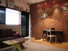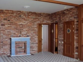 За вътрешни работи плочите, направени от залепените части от тухли, са подходящи за рамкиране на ключови интериорни елементи.