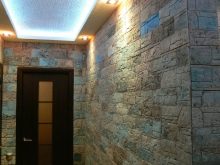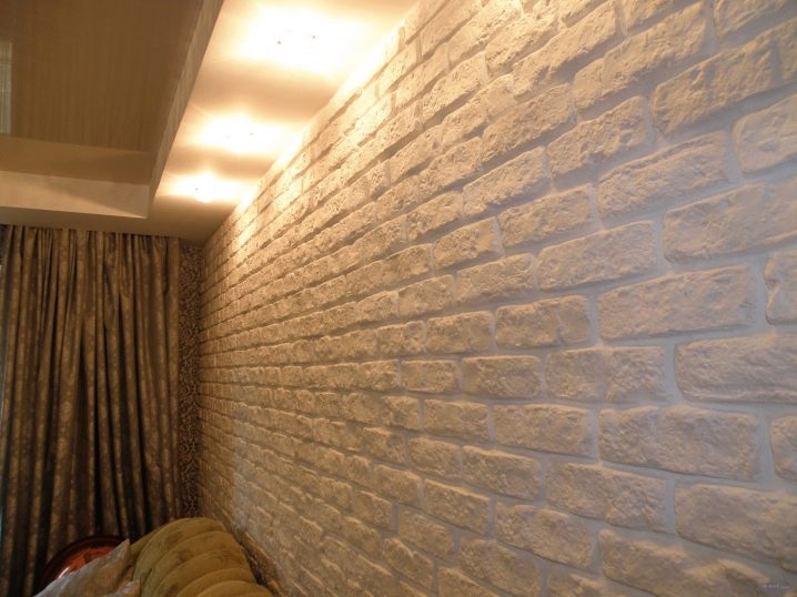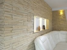 Отличителна черта на тази довършителна суровина е релефната повърхност. Тя може да бъде еднаква или асиметрична, което придава на облицовката оригиналност. Освен това, ако желаете, такъв материал може да бъде направен независимо, като по този начин спестява бюджета за закупуване на облицовъчен материал. В същото време цветът може да бъде включен в състава, като изберете нюанса на покритието в същия стил с интериорния дизайн.