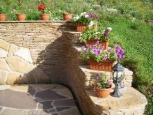 Облицовъчният камък е идеален за създаване на декоративни елементи. Калдъръм може да се използва за облицоване на частта от стената, върху която са фиксирани растенията..