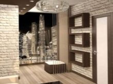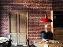 - Стилно решение с фототапет, изобразяващ града, и декоративни плочки от бяла тухла в модерен стил. Духът на големия град се предава чрез комбинация от стенни покрития, които обикновено се използват за декориране на къщи. Това решение е по -подходящо за интериора на клубове и кафенета, където хората искат да се чувстват в центъра на събитията..