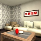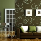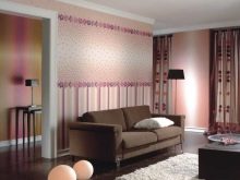 Друг сорт може да се нарече комбинация от тапети от същия цвят с шарка и без него. Този акцент ви позволява да подчертаете една стена или малък ъгъл, в който можете да окачите телевизор или колекционерски предмети..