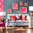 Препоръчително е да добавите основния цвят на тапета към декора, като закупите възглавници или картини с желания цвят..