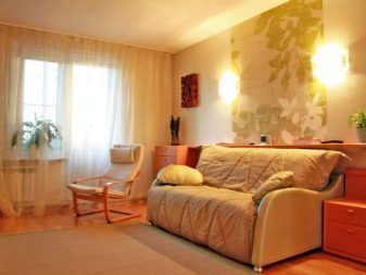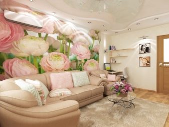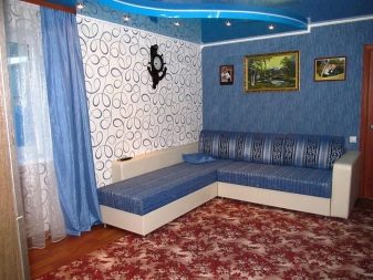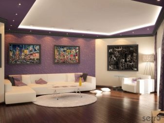 Чрез комбиниране можете да отделите работната зона от зоната за почивка. Ако се планира да се създаде място за спане в хола, тогава такова решение ще подчертае зоната за спане.