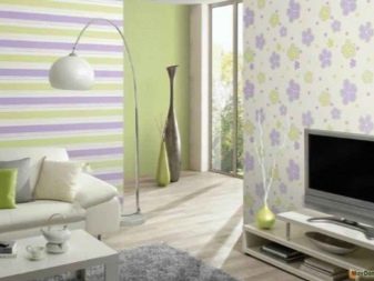 Основната характеристика на комбинацията може да се нарече фактът, че тапетите не се конкурират помежду си, а напротив, допълват. В рамките на следващите раздели ще бъдат разгледани комбинирани тапети в залата от 2 вида, включително дизайна на 2017 г..