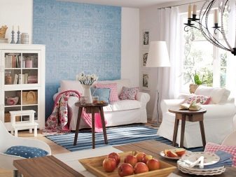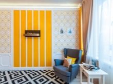Освен това, фокусирайки вниманието на любопитни очи върху определена стена, можете да скриете дребни недостатъци в стаята и неравни стени. С помощта на комбинация можете да подчертаете ниши, издатини или, обратно, да ги украсите.