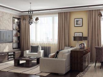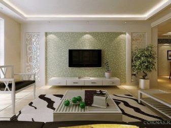 Правилният подбор на тапети помага да се победят нишите в хола. Ако се съсредоточите върху нишите, като комбинирате и поставите видео оборудване на тази стена, тогава можете да превърнете този недостатък в достойнство. Освен това в тази ниша можете да поставите редица лампи, включително прожектори. Което от своя страна само ще украси интериора и ще внесе свой собствен почерк в него.