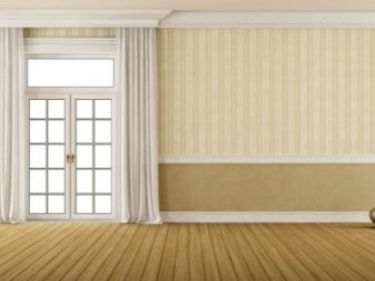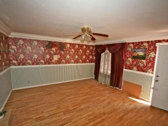 Комбинацията от различни ленти за тапети ви позволява да скриете несъвършенствата не само на повърхността на стените, но и на самата стая. Ако използвате обикновен тапет, те на фона на извити стени, напротив, само ще подчертаят този недостатък.