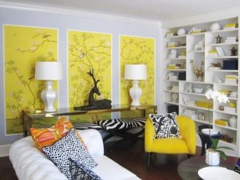 - Жълто. Тя трябва да се комбинира с кафяви или зелени мебели..