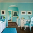 Пространството може да бъде разделено на зони, а ивици тапети с флорална тематика, ивица или клетка могат да се използват като декор..
