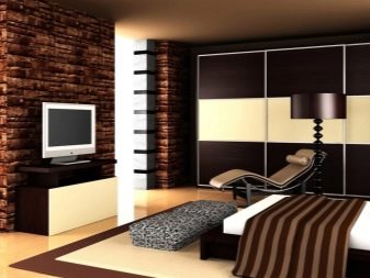 - Модерен градски хай-тек стил с най-новите технологии и строителни материали. Спалнята е елегантно декорирана с различни нюанси на кафяво. Стенна декорация с клинкерни плочи, органично вписана в интериора.