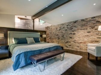 - Индустриален стил на таванско помещение, имитира изоставени фабрични помещения. Практикуват се груби необработени повърхности. В този случай се включват няколко вида облицовъчен материал..
