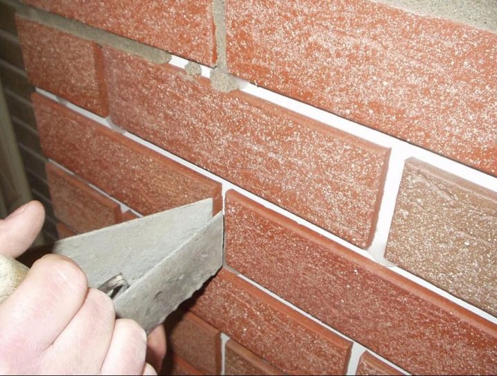 - След като зидарията се втвърди, можете да започнете фугиране. Първо трябва да обработите шевовете с шпатула. След това ги напълнете с шпакловка и изравнете. Излишъкът се отстранява с ренде и гъба, напоена с вода, шлайфана с парцал.