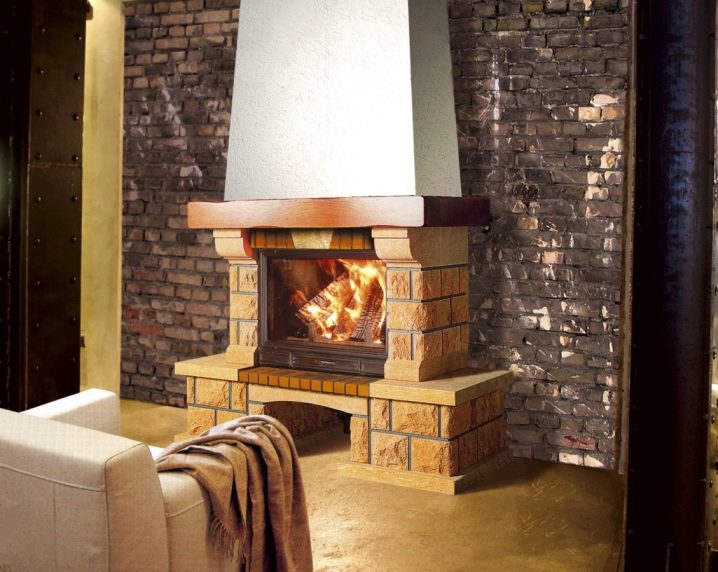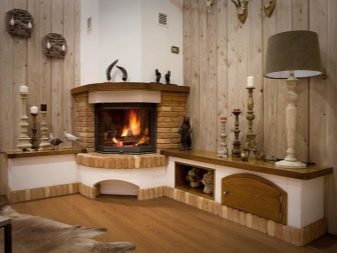Такова покритие върви добре с дърво. Редица рафтове за камина могат да имат подобен или контрастен нюанс. В допълнение към него, метални плочи и ковани части често се използват като декор. Естествените материали винаги ще подчертават външното достойнство един на друг.