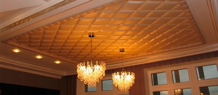 За облицовъчни тавани кожените модели се използват доста рядко, но производителите за такъв завършек произвеждат най -фините модификации на плочки..