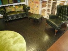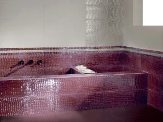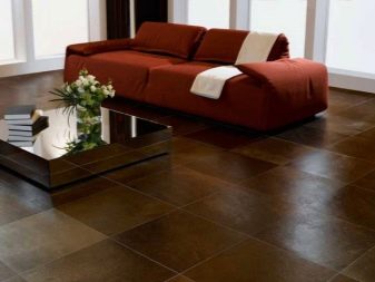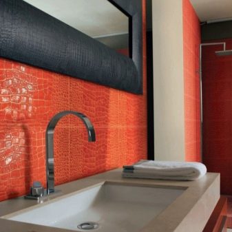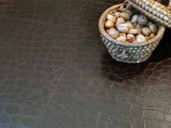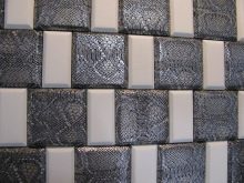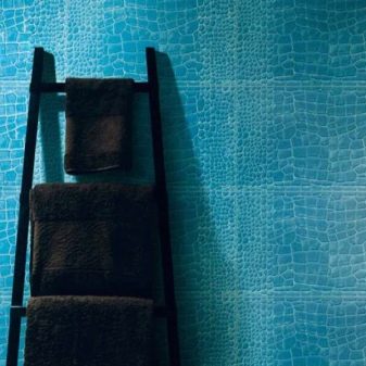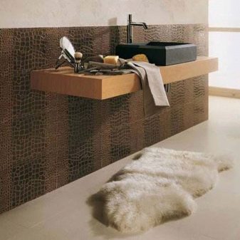 - Керамични плочки с вид на кожа. Такова покритие може да имитира естествена кожа поради специалния релеф и цвят на повърхността, или може да има горен кожен слой..