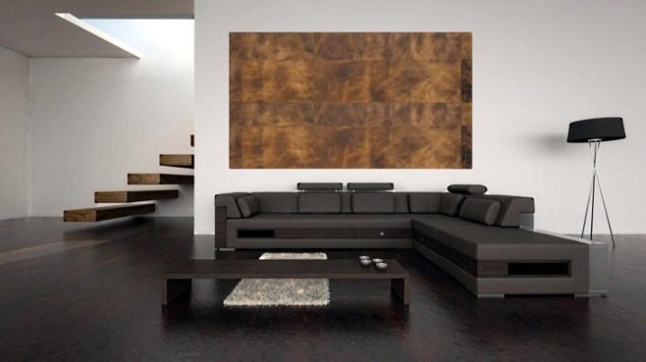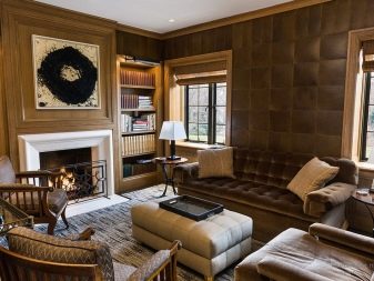 - кожените плочи могат да покрият само една стена в стаята, като по този начин я подчертават;